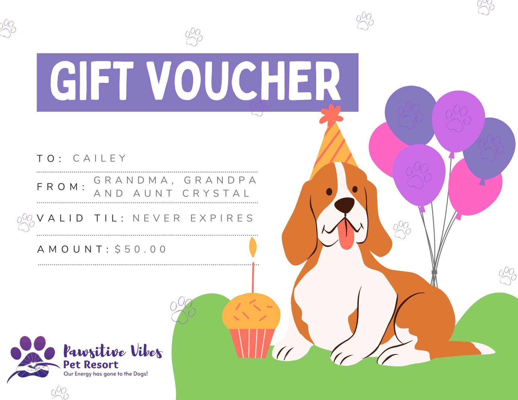 Surprise your pet-loving friends and family with Pawsitive Vibes Pet Resort's gift vouchers! Don't wait! Spread joy and celebrate special moments with Pawsitive Vibes Gift Vouchers today!